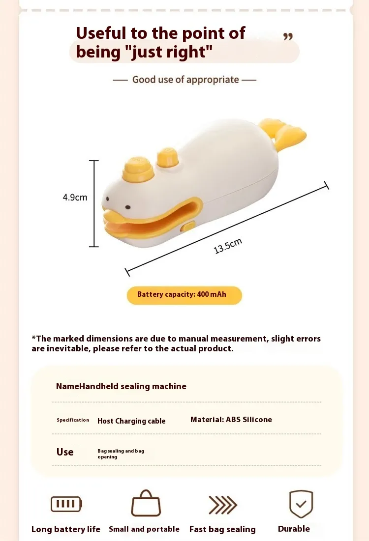 Cute Duck Rechargeable Sealing Machine – Mini Heat Bag Sealer