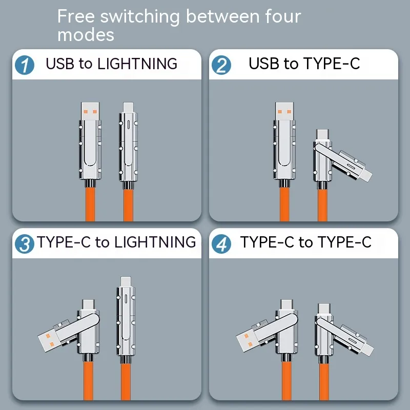 Charge all your devices with ease using the 100W 4-in-1 Retractable Fast Charging Cable, a compact and versatile solution for powering multiple devices. With support for PD fast charging, this cable is equipped with Lightning, USB-C, and Micro USB interfaces, making it ideal for iPhone, Samsung, Huawei, Honor, and other Android devices.