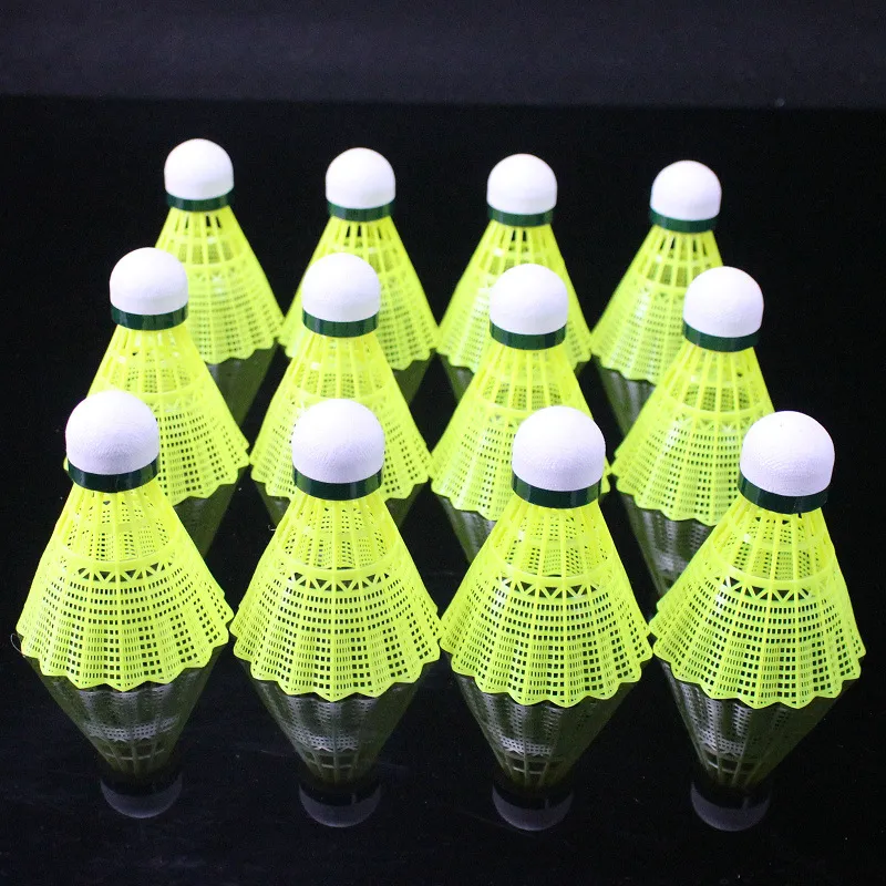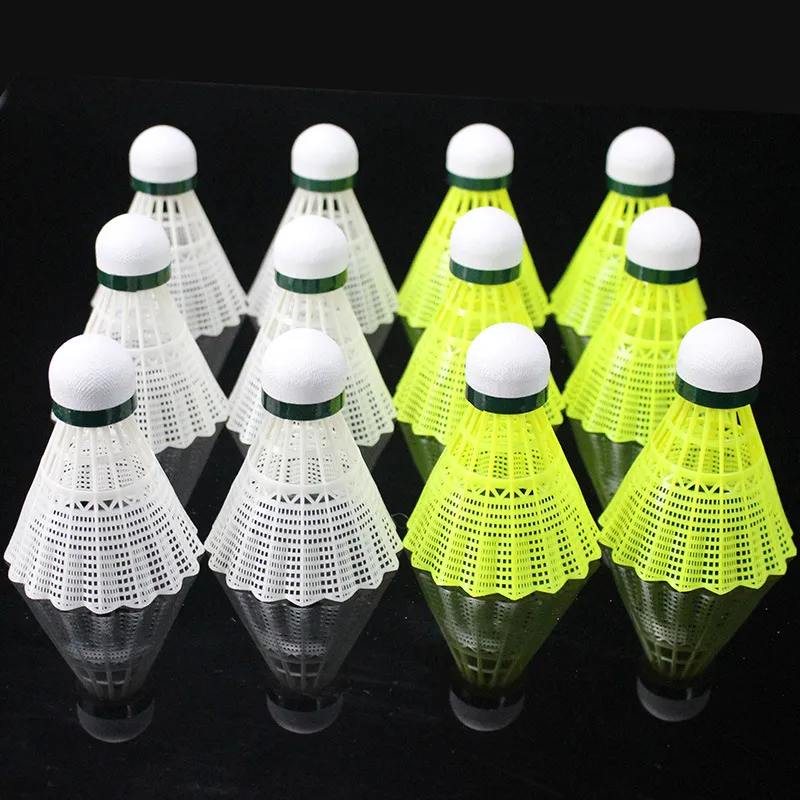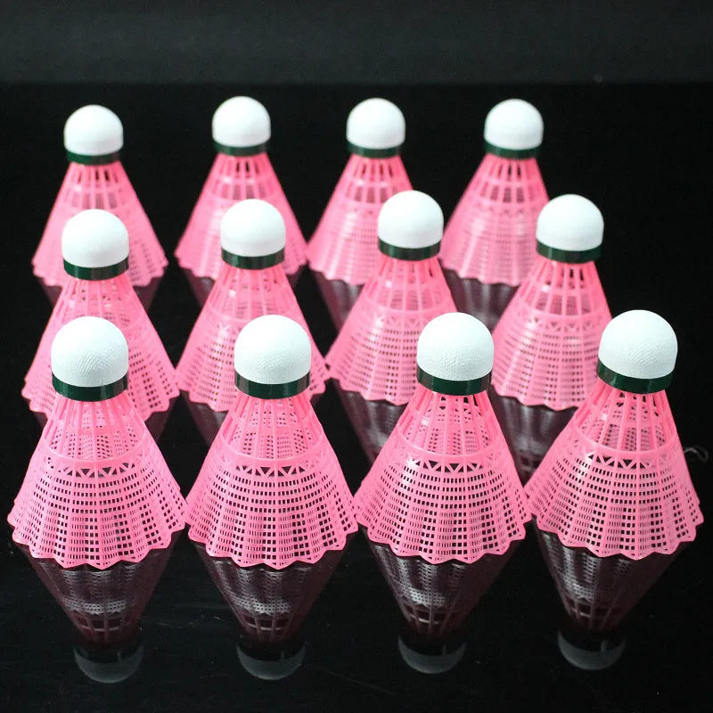 Color: 12 white nylon badminton, 12 yellow nylon badminton, 12 pink nylon badminton