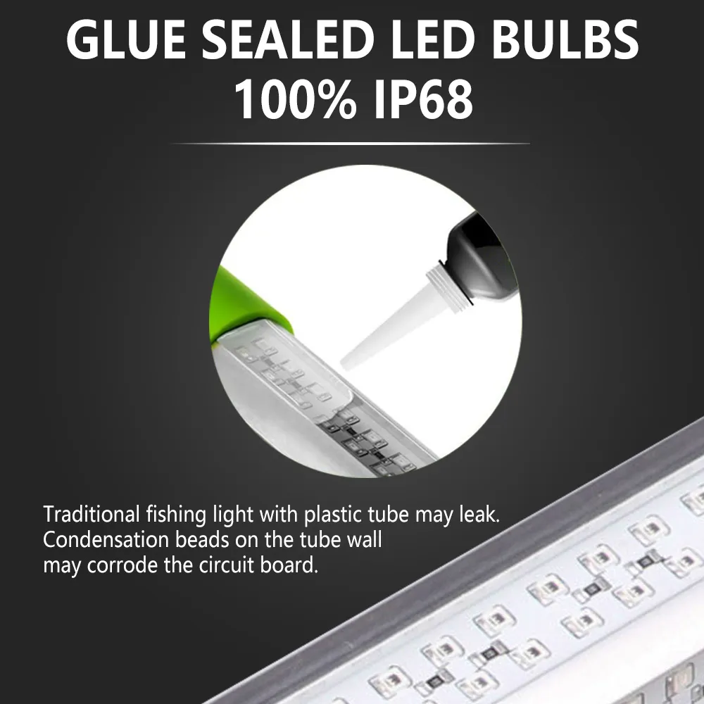 Enhance your night fishing experience with this 12V 100W underwater fishing light, designed to attract fish and squid effectively. Emitting a bright yellow-green glow, it creates an ideal illuminated zone underwater, drawing in fish from a wide area. Perfect for rafts, boats, or shore fishing, it increases your catch potential during night expeditions.