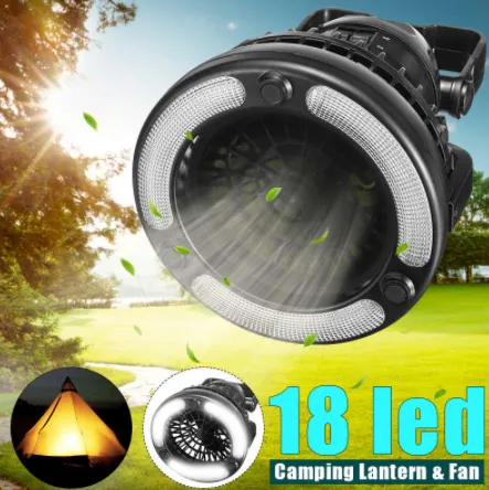 18 LED Camping Lantern with Fan – Hanging Light for Outdoors