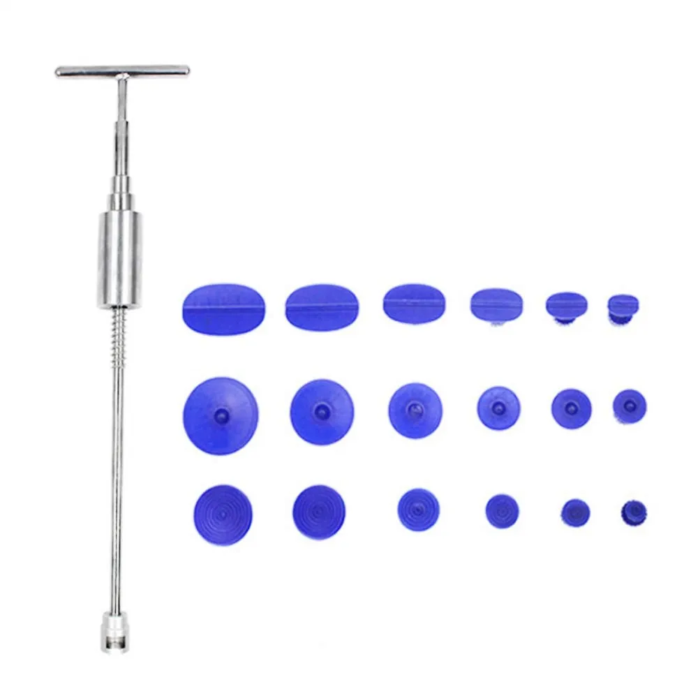 Fix car dents easily with this 18-piece Dent Repair Tool Set, designed for professional auto repair shops and home use. The kit includes a durable T-Rod Puller, making it simple to remove dents without damaging the car’s paint surface.