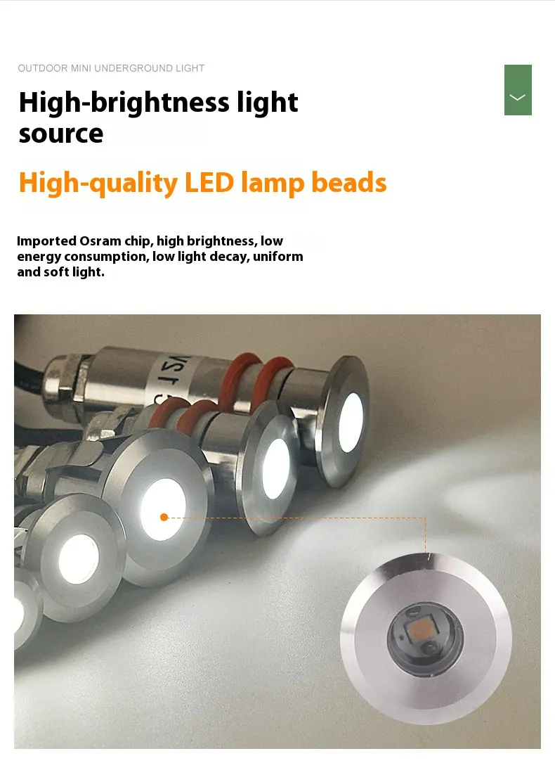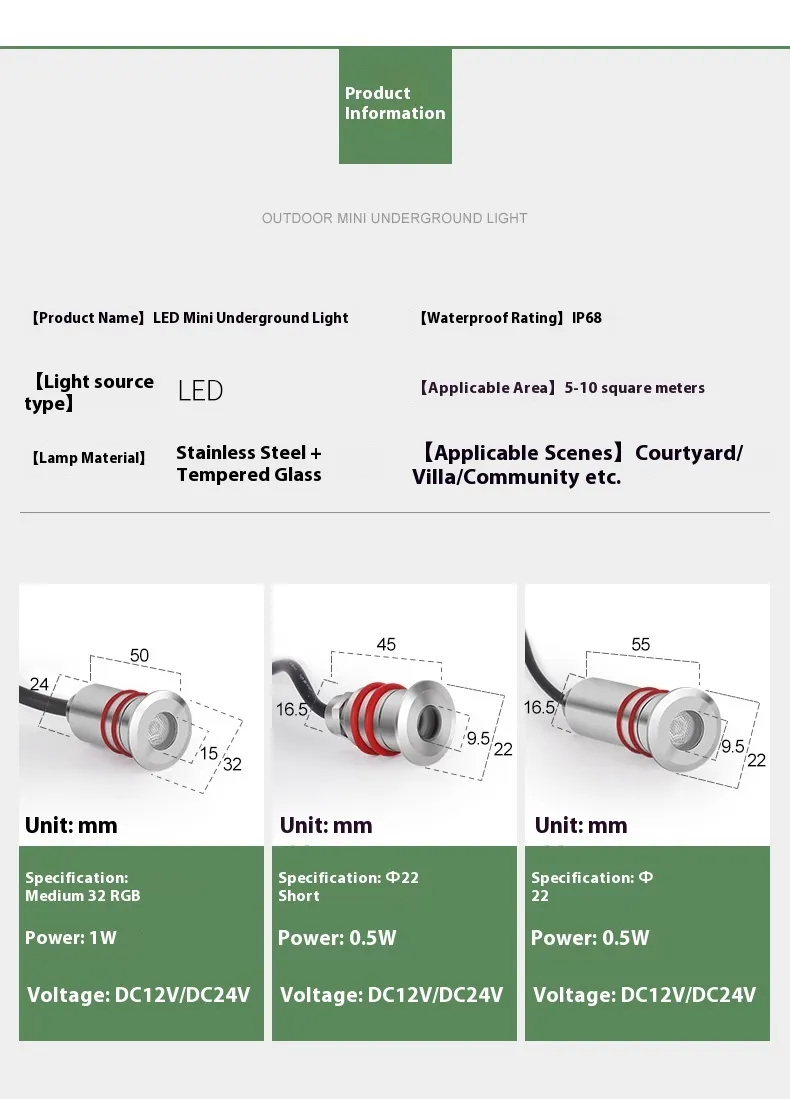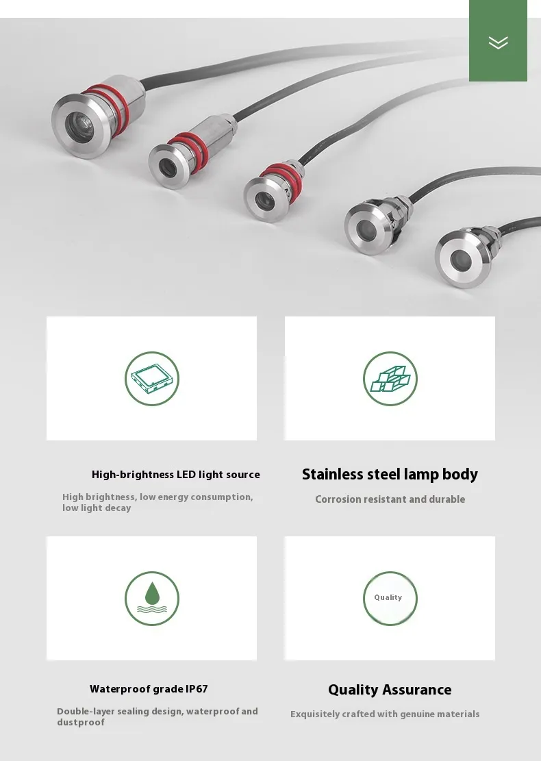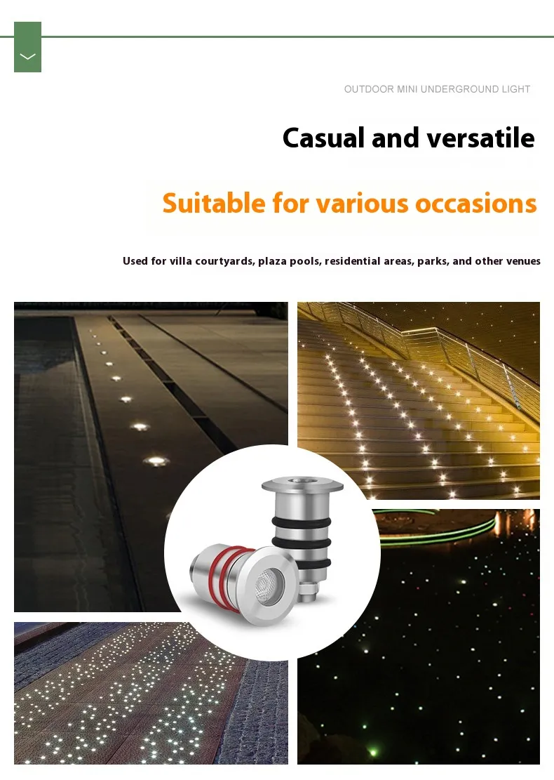 Perfect for modern outdoor designs, this mini underground lamp enhances visual appeal while providing functional lighting. Ideal for walkways, underwater features, or steps, it combines durability, style, and eco-friendly LED technology in a compact package.