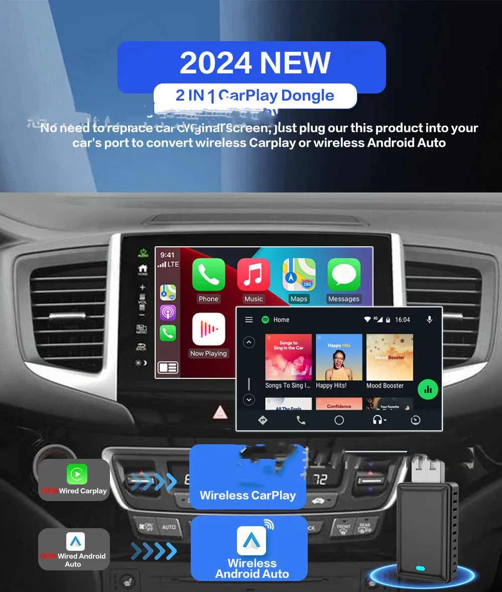 Perfect for drivers who want both practicality and advanced technology, the 2-in-1 Smart Dongle delivers seamless navigation and user-friendly operation. Whether you’re commuting, traveling long distances, or exploring new routes, this device ensures a modern, connected, and hassle-free driving experience.