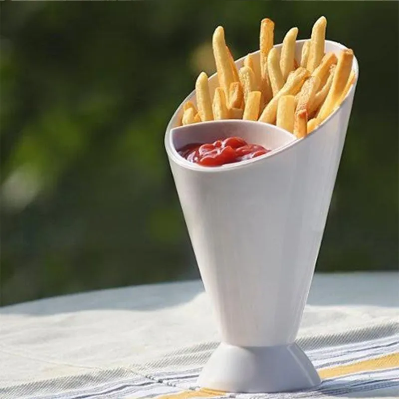 2-in-1 Snack Cone Dip Cup – French Fries & Sauce Holder | Oblique Tableware Kitchen Serving Cup