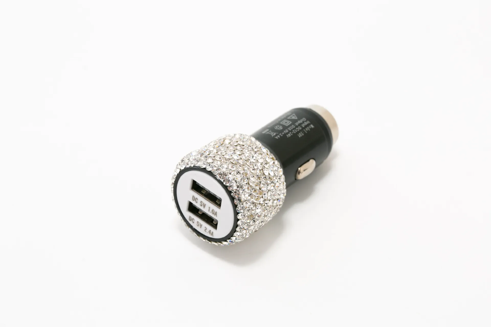 2.4A Dual Port Car Charger – Diamond-Inlaid Fast USB Travel Adapter