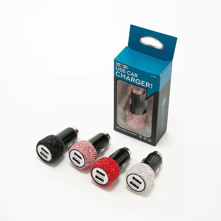 Charge your devices in style with the 2.4A Dual Port Car Mobile Phone Charger. Designed with a premium diamond-inlaid finish and durable aluminum alloy build, this car charger combines elegance with strength. Its compact 25×65mm size makes it easy to carry, while the sleek design adds a touch of luxury to your vehicle.
