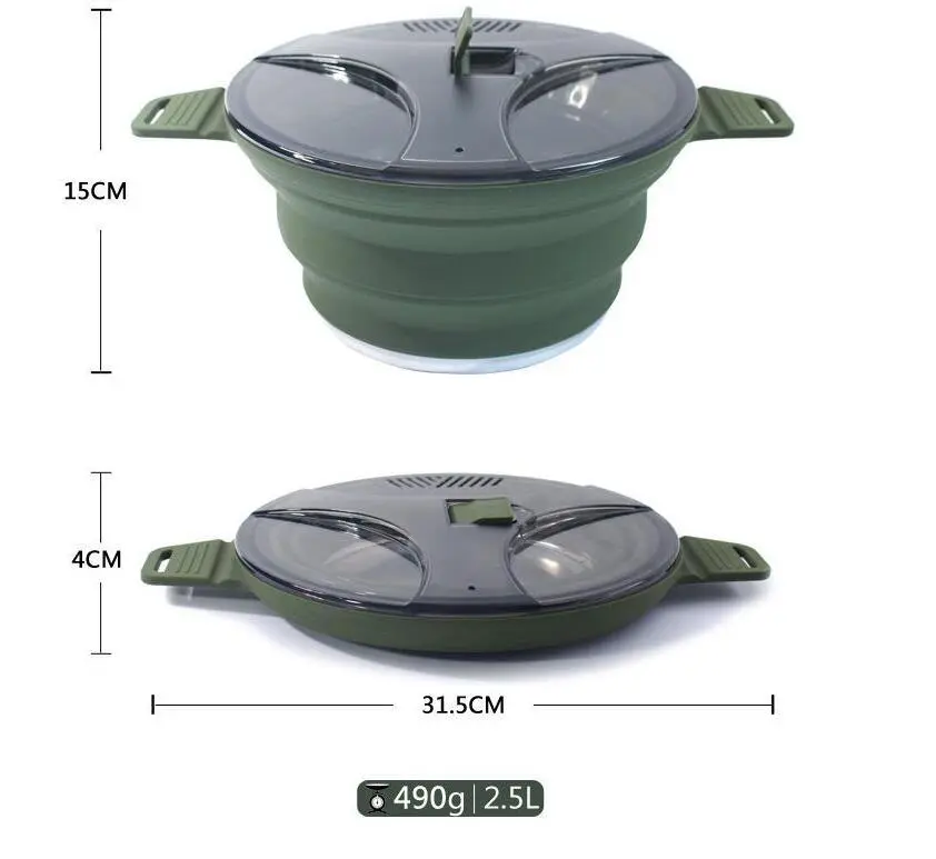 Experience the convenience of outdoor cooking with this 2.5L Outdoor Portable Travel Collapsible Pot. Crafted for adventurers, this foldable pot is perfect for camping, hiking, backpacking, and picnics. It combines portability with durability to support all your outdoor culinary needs.
