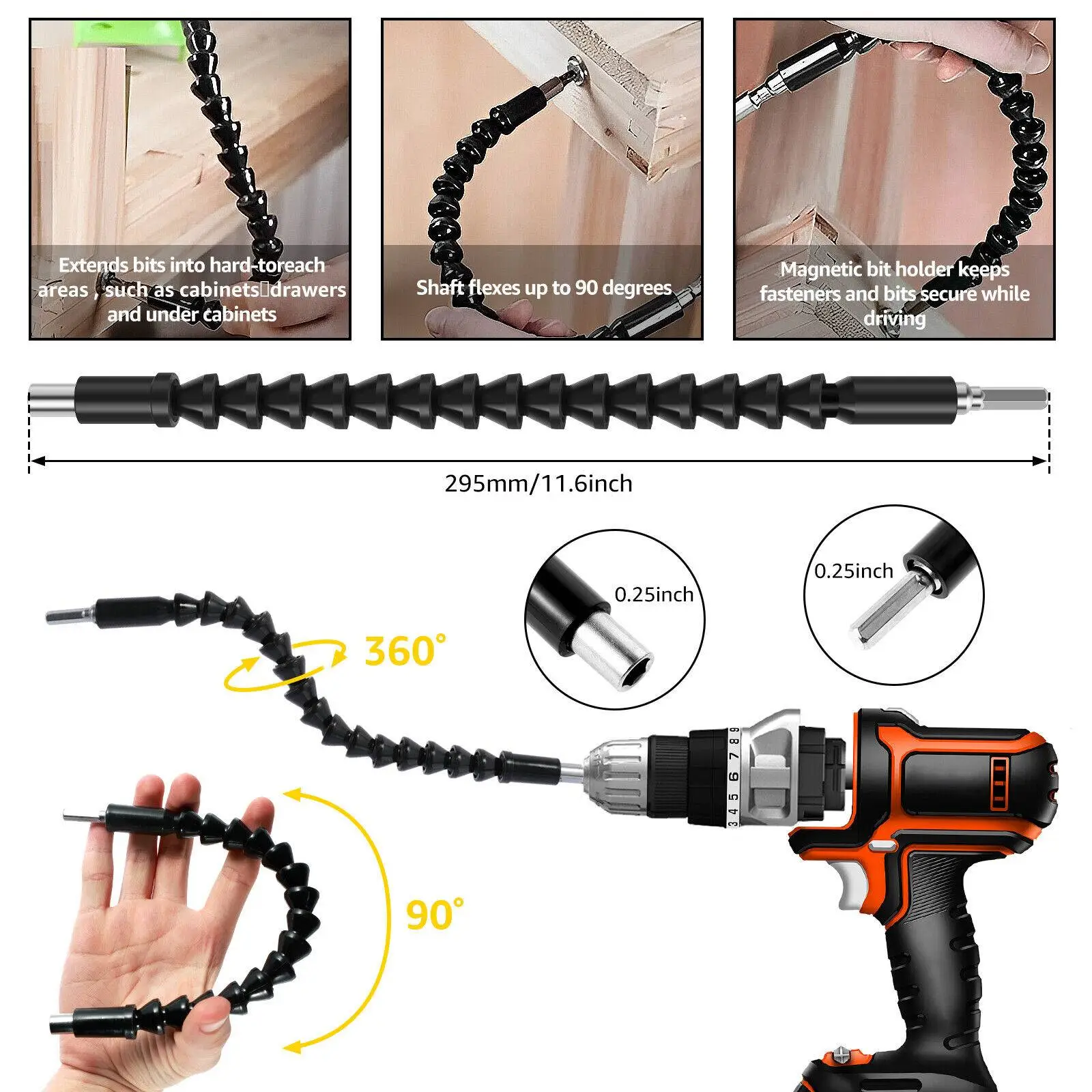 [Flexible Drill Extension Rod] The 11.7inch bendable flexible drill extension rod can twist and rotate at many different angles. It can