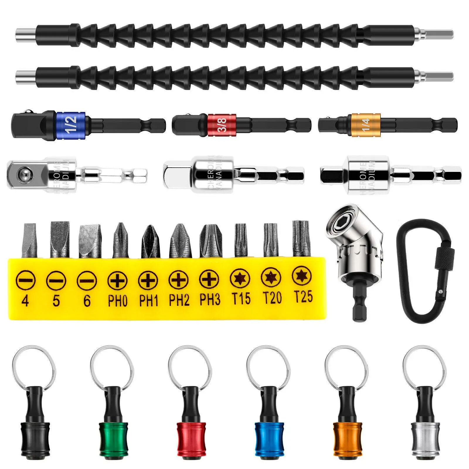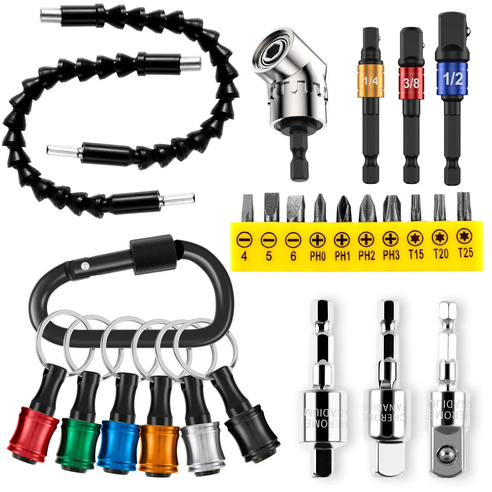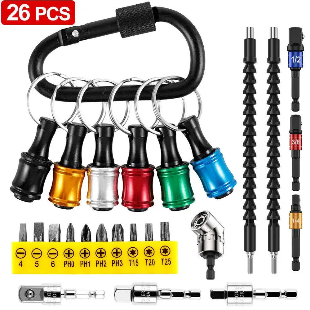 26PCS Drill Bit Extension Set – Flexible Shaft & Right Angle Adapter for Screwdrivers