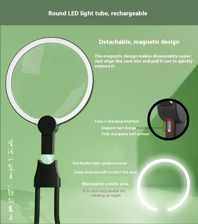 Ideal for salons, offices, hobby work, and personal use, this LED magnifying lamp combines functionality with durability. USB Type-C power support offers stable performance, while the lightweight build ensures ease of handling and storage. It is a practical tool for anyone requiring enhanced visibility and accurate detail work.