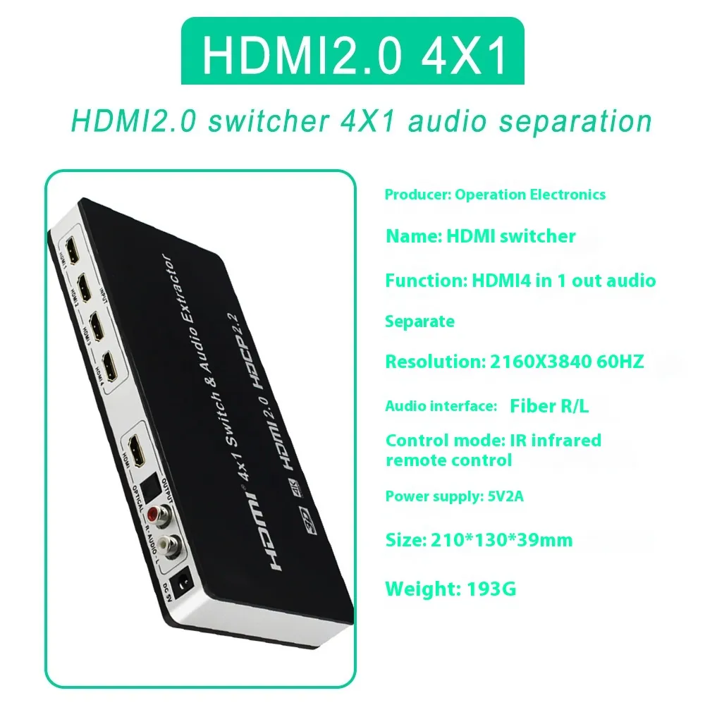 4-in-1 HDMI Switch with Audio Out – 4K HD Video & Remote Control