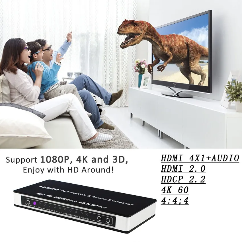 4-in-1 HDMI Switch with Audio Out – 4K HD Video & Remote Control