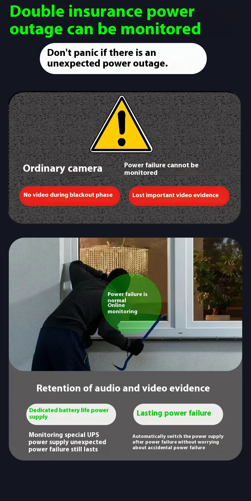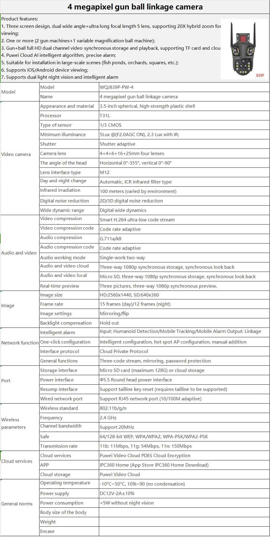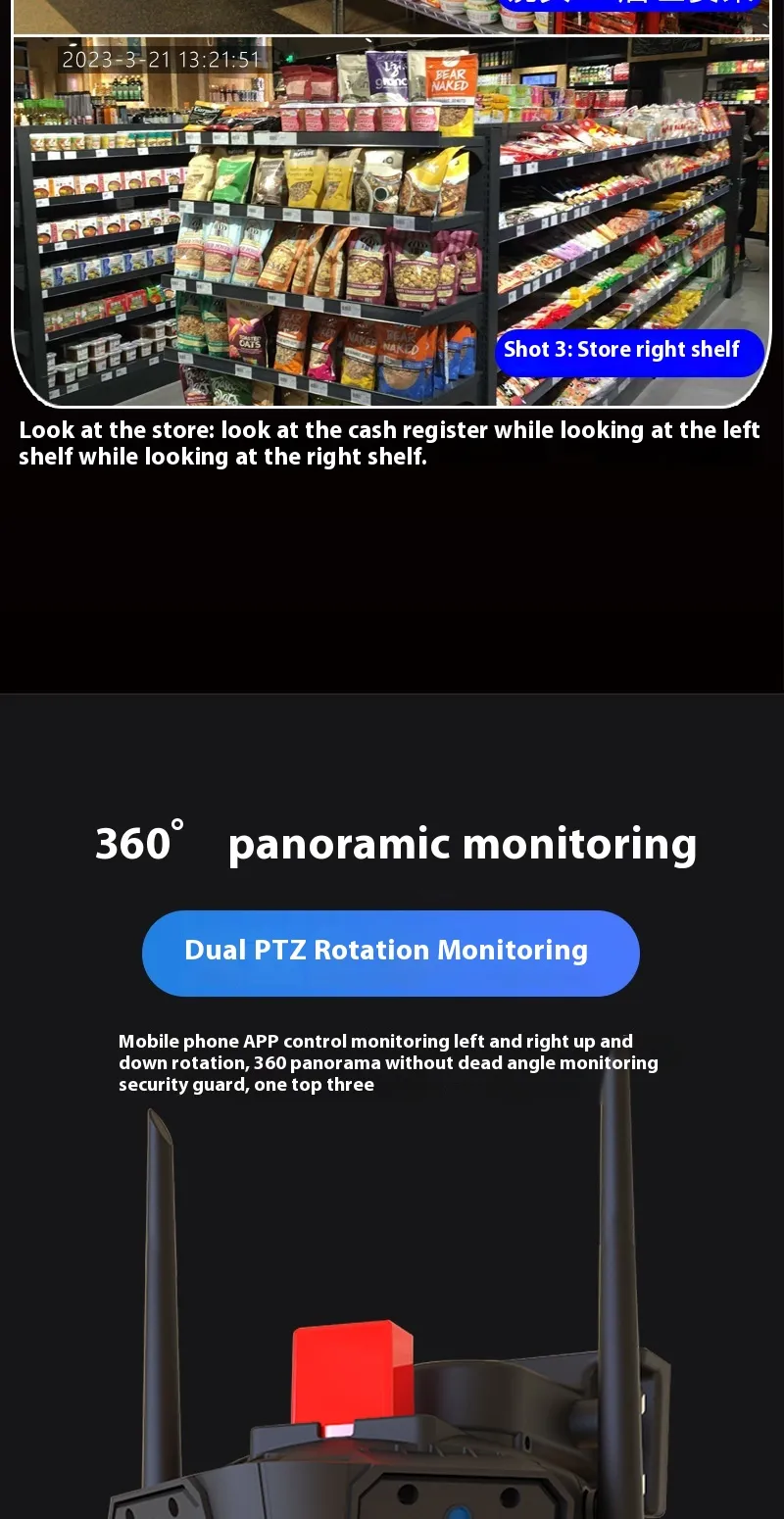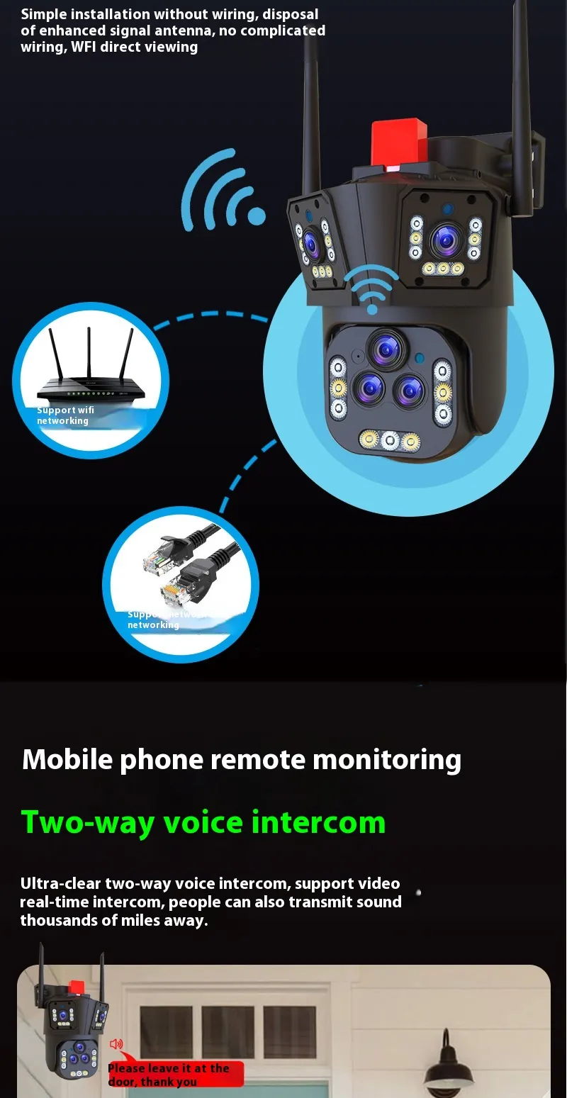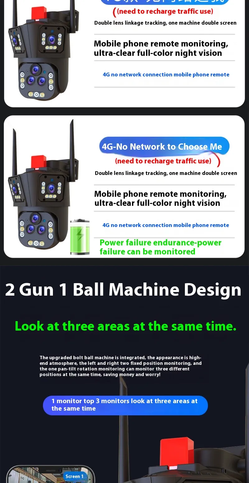 Equipped with a powerful 20X zoom lens and WiFi connectivity, this surveillance camera delivers crisp, detailed footage. The three-screen display provides wide coverage and flexible viewing options, while the included 15-day storage card ensures secure video recording without the need for constant maintenance.