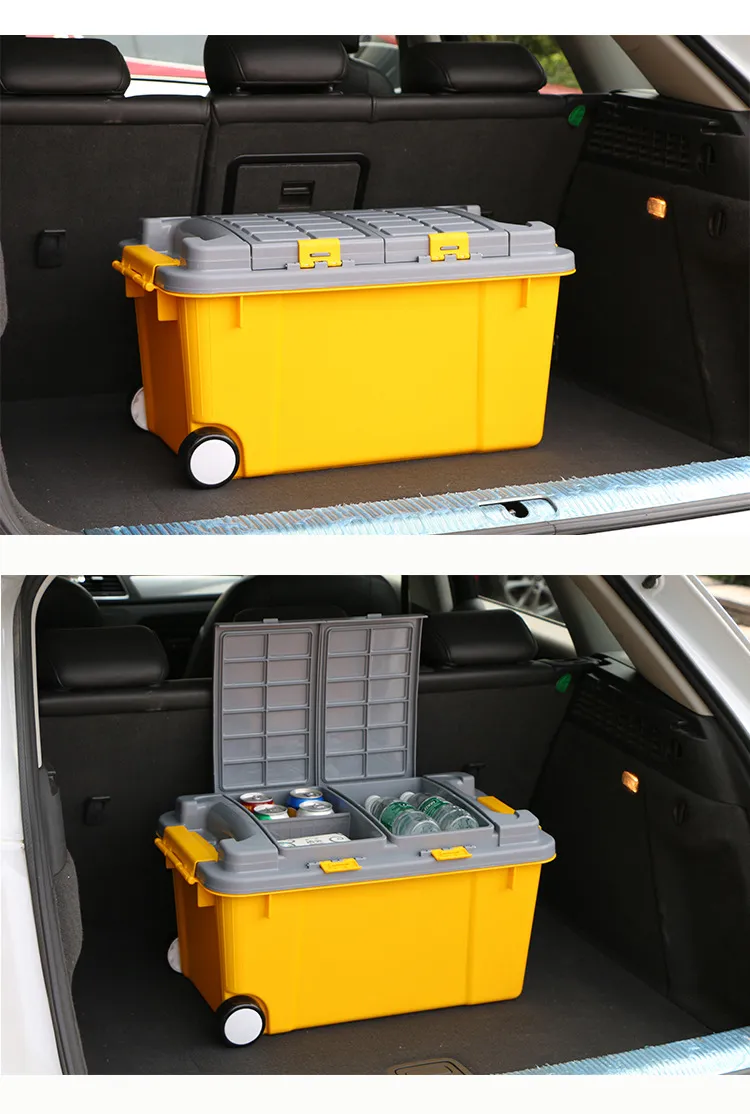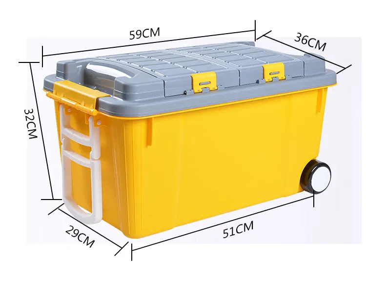 55L High-Strength Plastic Storage Box with Trolley & Double Cover