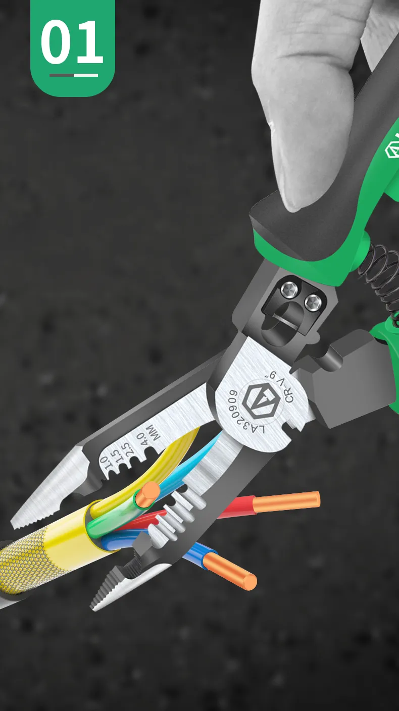 6-in-1 multifunctional design, which integrates clamping, cutting, stripping, cutting iron wire, and crimping terminal
