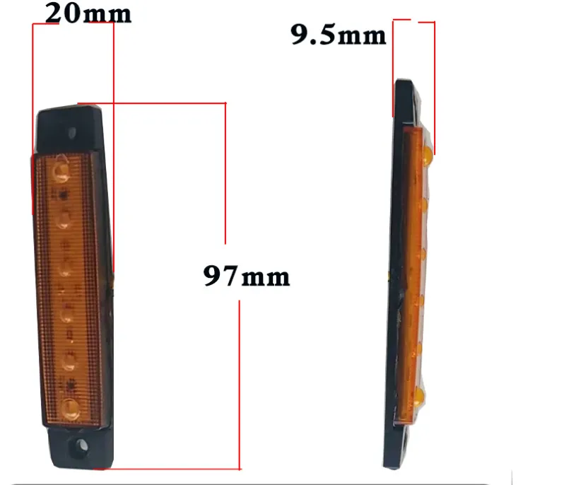 Improve road safety and vehicle visibility with this 6-LED Truck Side Width Light Strip. Designed specifically for trucks, this compact light provides bright, clear illumination that enhances side awareness for drivers, especially during night-time or low-light conditions. Its sleek design integrates seamlessly into truck bodies without affecting aerodynamics.