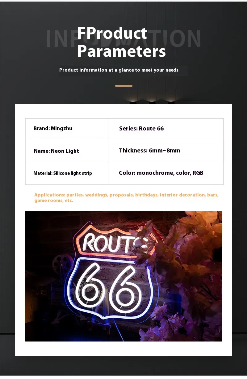 Rated with IP42 protection, it is splash-resistant and safe for indoor use. Lightweight and easy to mount, the 66 Highway neon sign brings vibrant warmth and a modern-retro vibe to any wall or display, perfect for both personal and commercial spaces.