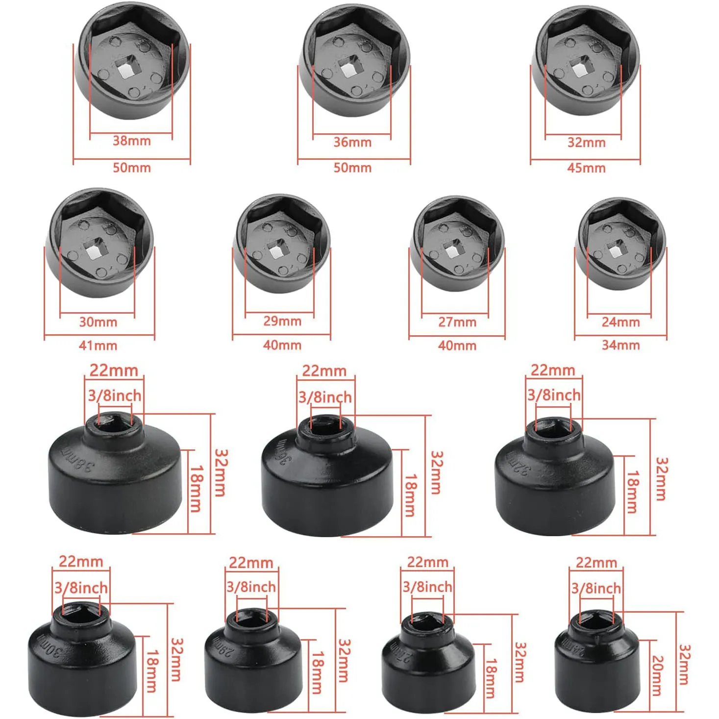 Make oil filter changes faster and easier with the 7-Piece Oil Filter Socket Wrench Set. Crafted from high-quality tool steel, this durable kit is designed to handle tough jobs with precision and reliability. Its hexagonal edge-to-edge design ensures a secure grip, preventing slips during use.