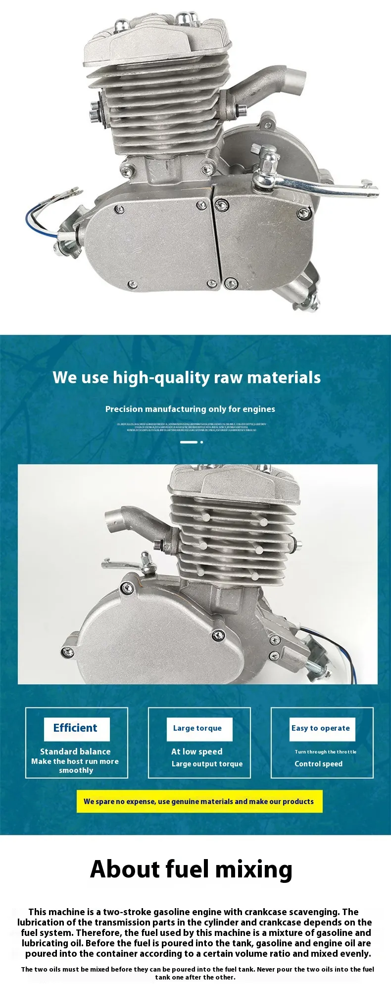 - Type: Single-cylinder, naturally air-cooled, two-stroke gasoline engine