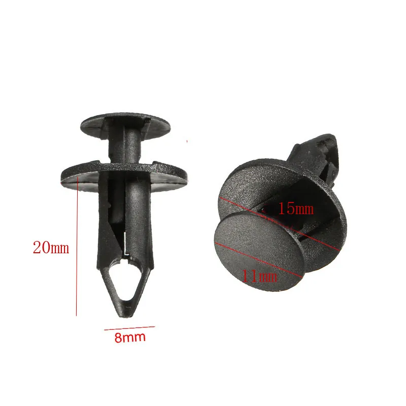 Made from durable plastic, each clip is lightweight yet strong, resisting wear and corrosion over time. Their push-in design allows for easy installation and reliable retention, making them ideal for automotive repairs, replacements, or custom modifications.
