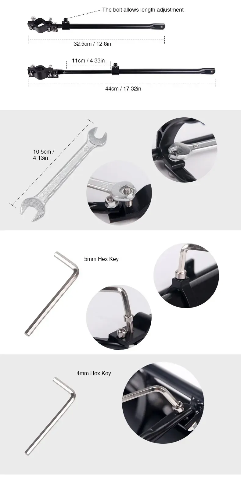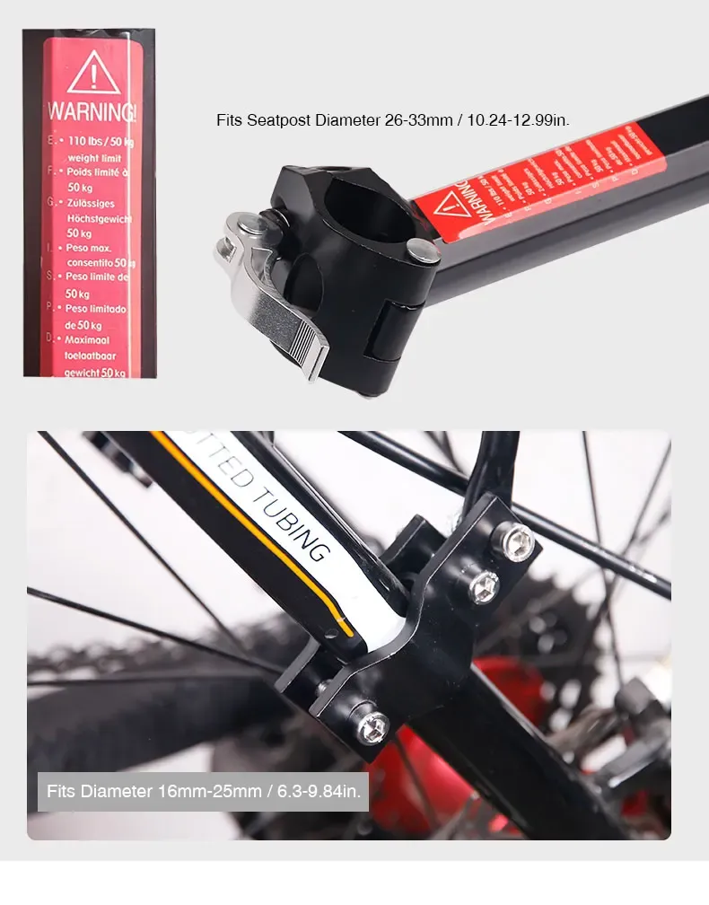 1. Height and length adjustable - for bicycles from 20 to 29 inches,