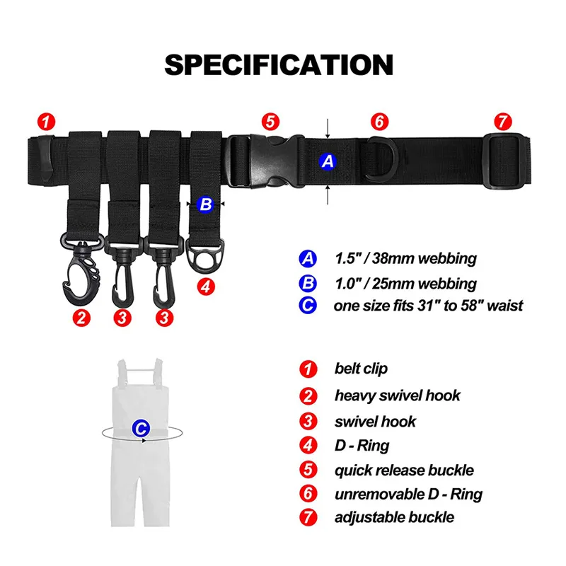 Adjustable Fishing Wader Belt β Outdoor Gear Strap with Plastic Buckle, D-Ring & Hook Attachment