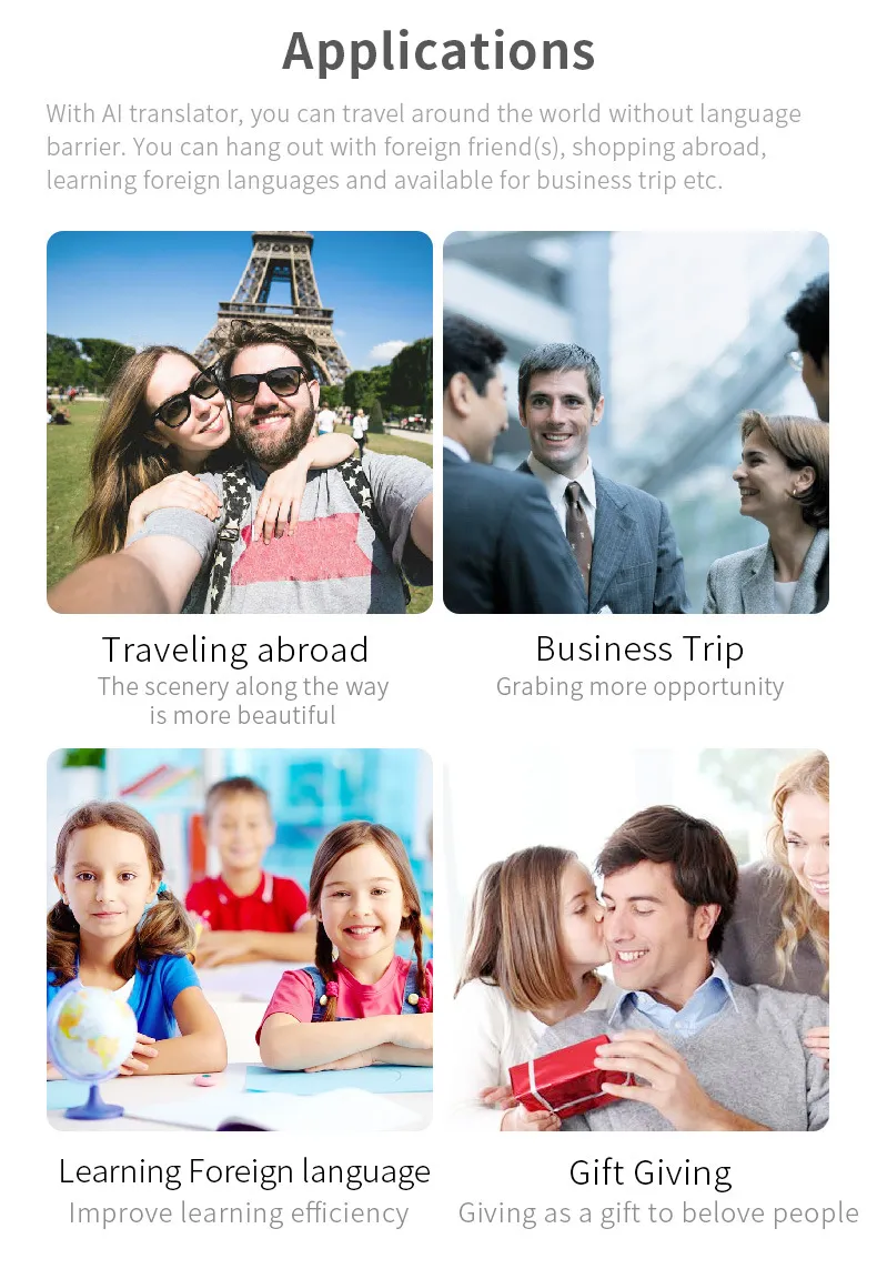 Enjoy up to 12 hours of continuous use and 72 hours of standby time, making it perfect for long trips or full workdays. Whether you need photo translation, real-time voice conversion, or AI-powered dialogue in Chinese, this tool covers it all. Compact and gift-boxed, it’s an ideal present for travelers, students, or international colleagues.