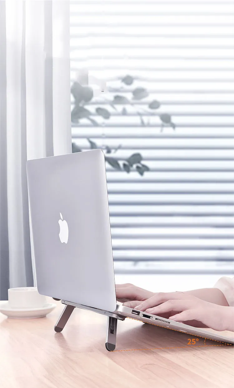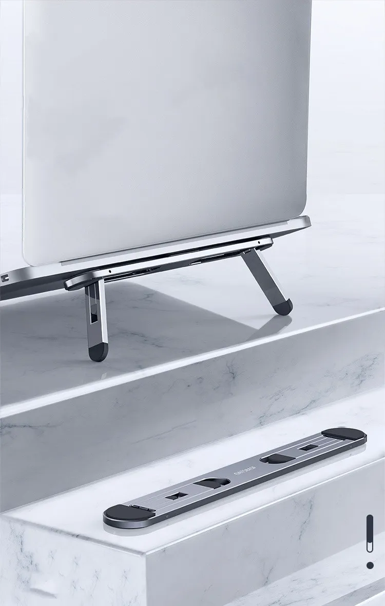 Crafted from high-quality aluminum alloy with silicone padding, this stand offers strong support while protecting your device from slipping or scratching. Its low-profile, minimalist “pen-style” design is both elegant and functional, subtly lifting your laptop to improve ventilation and reduce neck strain during extended use.