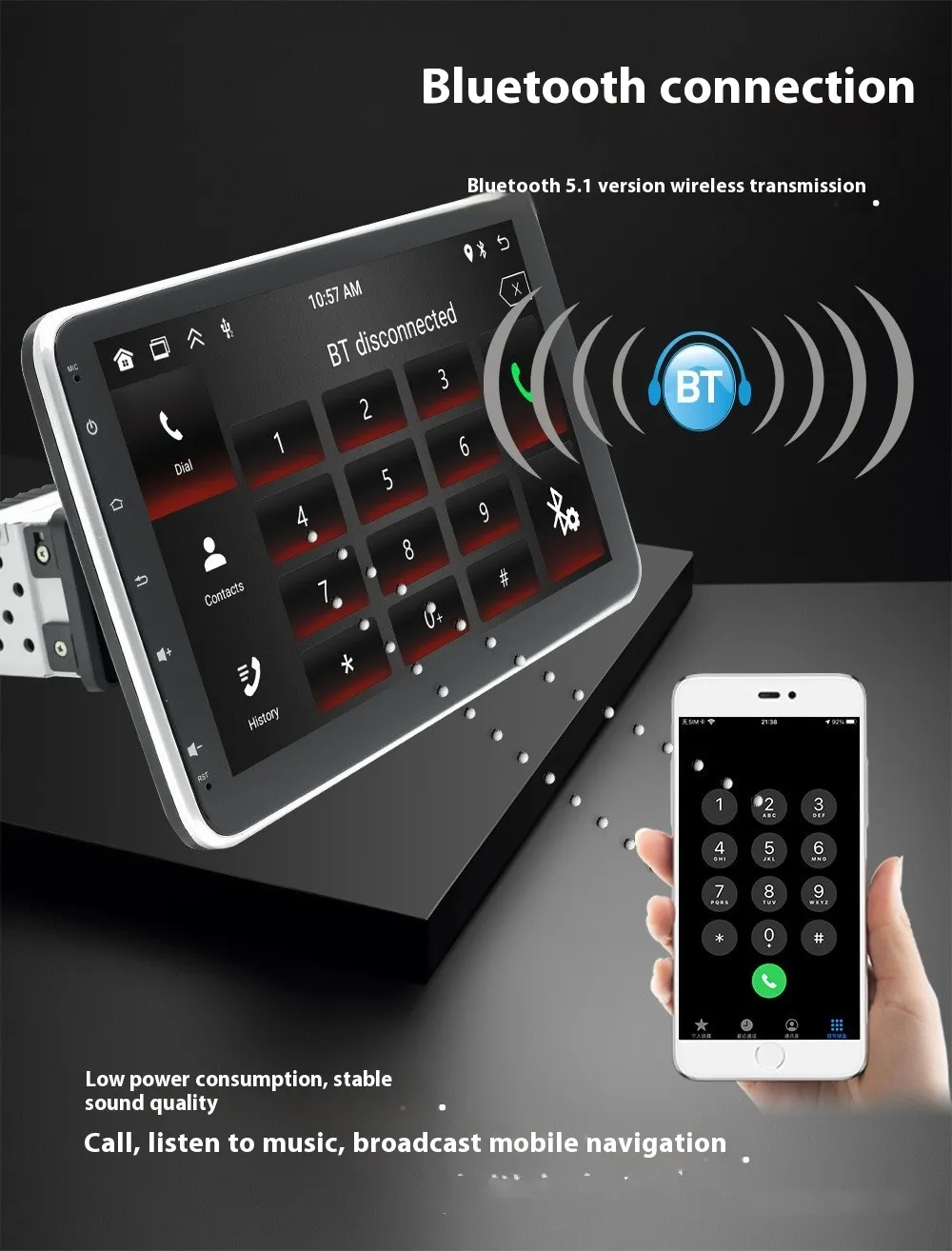 Upgrade your driving experience with this 10.1-inch Android car multimedia player, designed with a 360° rotating HD screen for maximum convenience. With a resolution of 1024×600, it delivers sharp visuals and smooth performance, making navigation, entertainment, and control easier than ever.