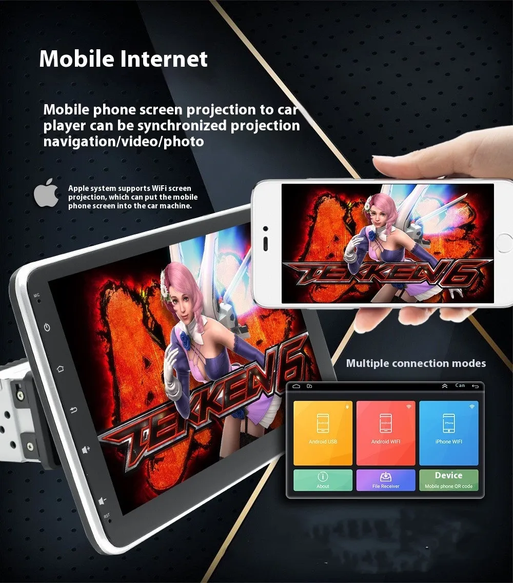 Android Car Multimedia Player with 360° Rotating Screen 10.1 Inch