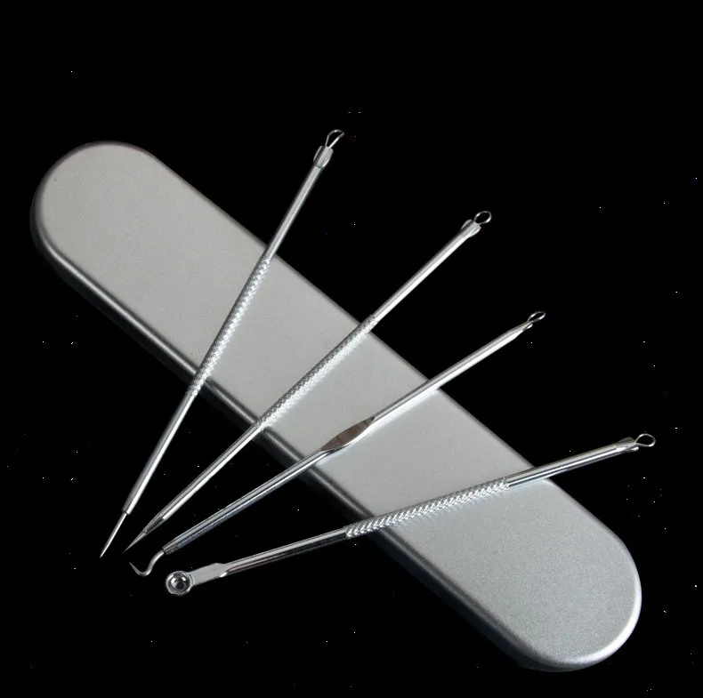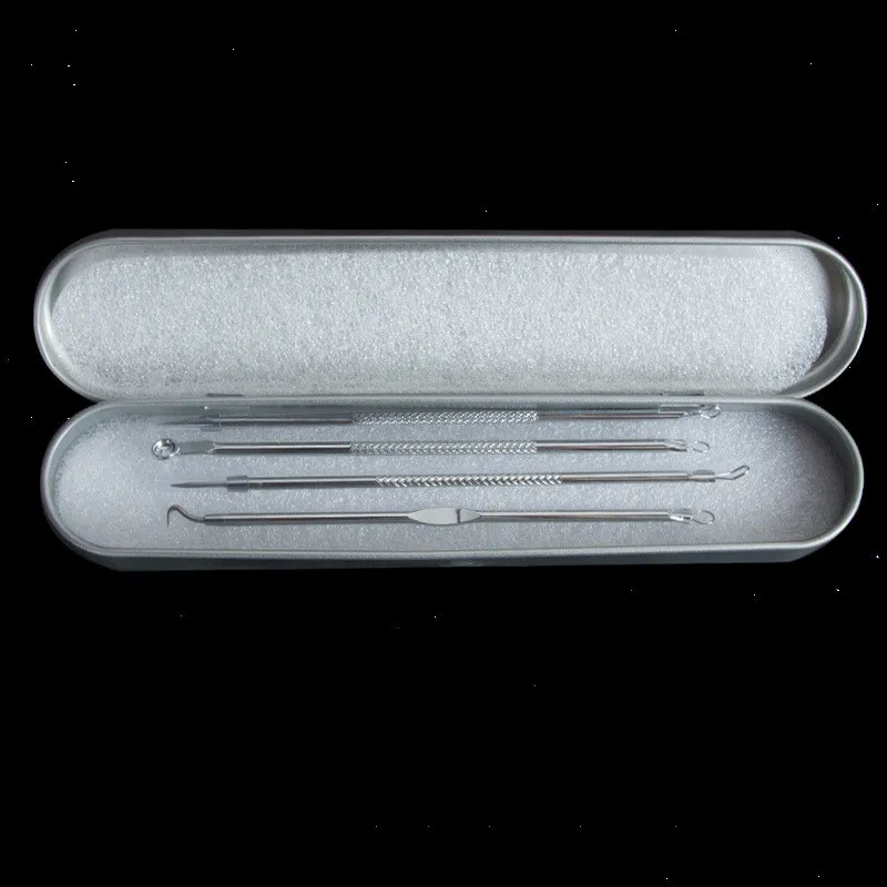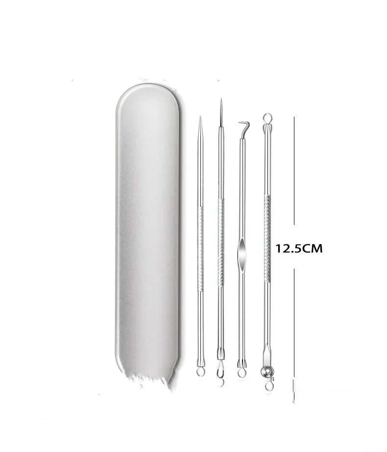 Pimple Pin Anti-Acne Iron Box – 4-Piece Stainless Steel Double-Headed Needle Set
