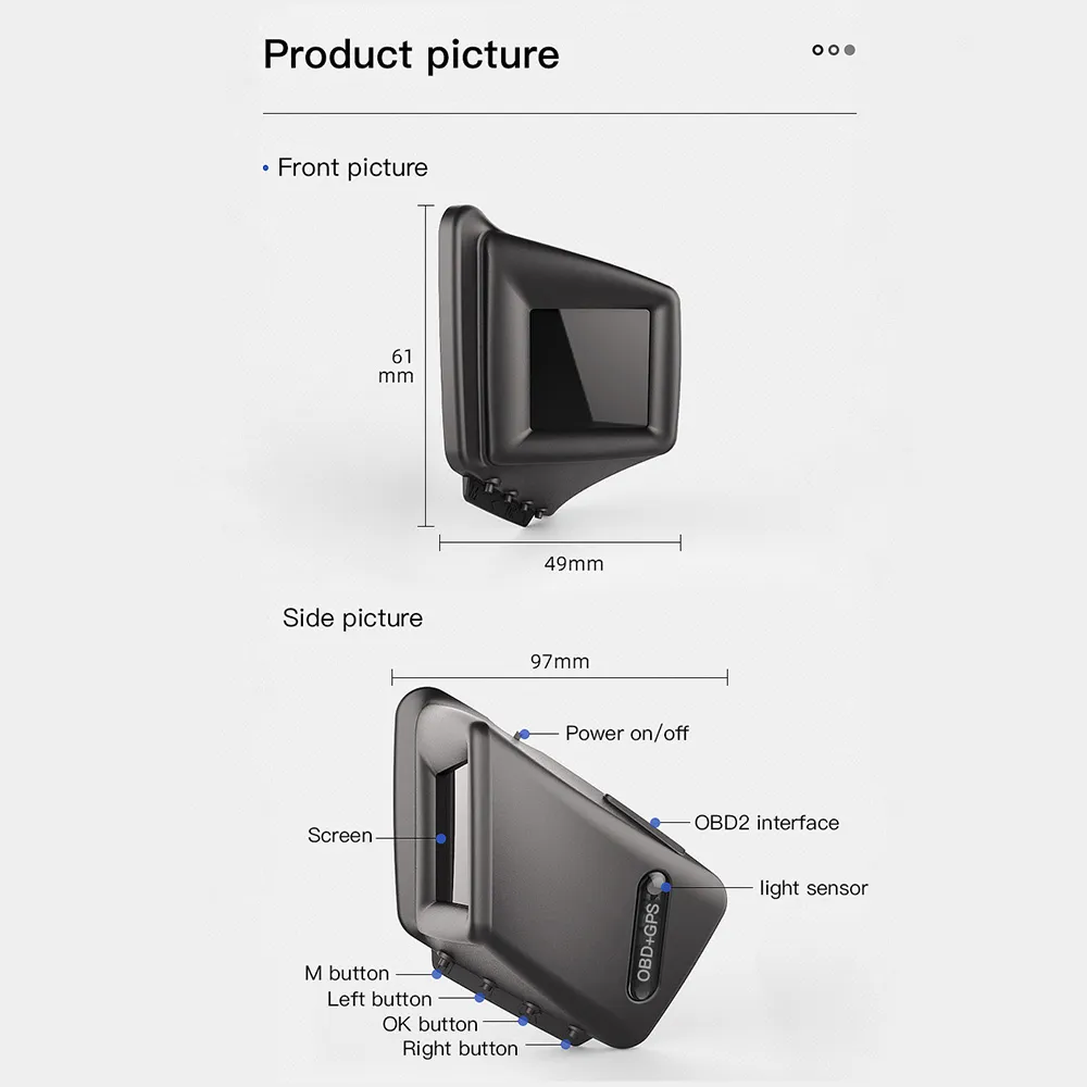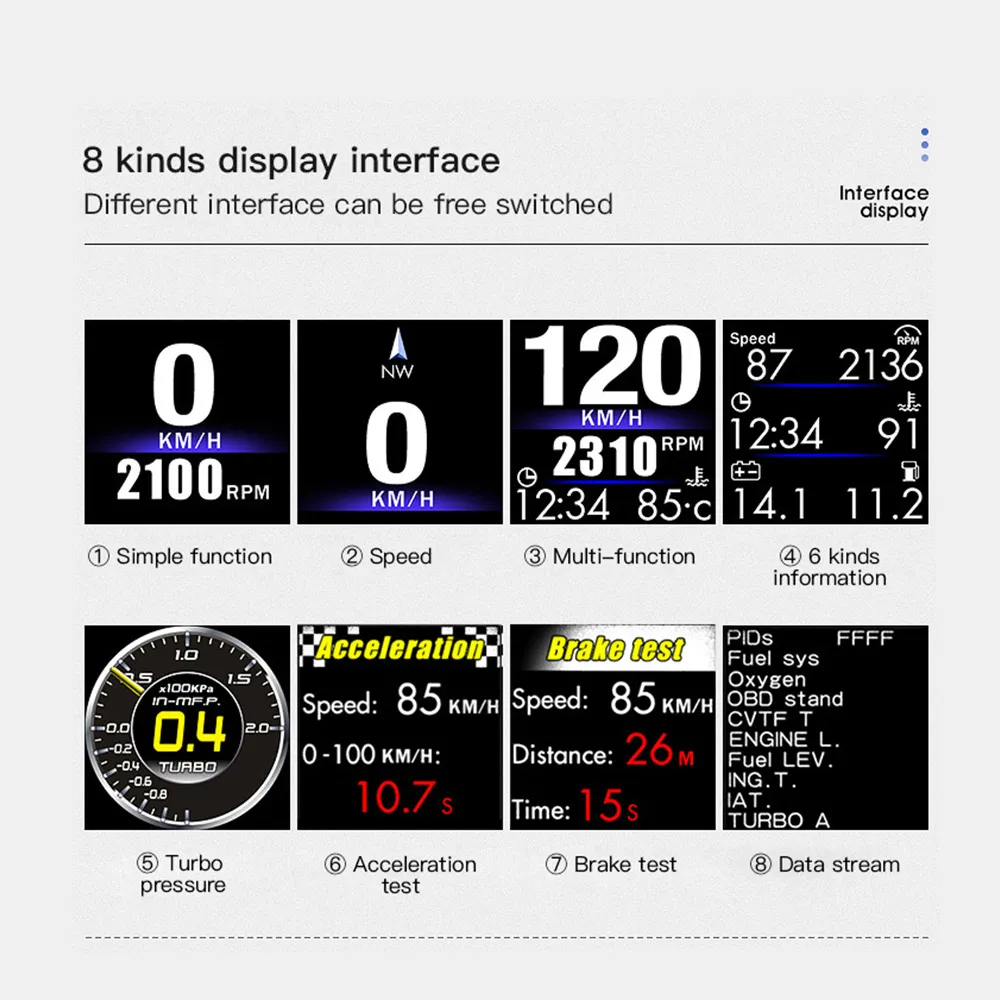 Equipped with a dual system of OBD and GPS, this HUD provides accurate real-time data on speed, performance, and navigation. The 2.5-inch LCD screen with 3000 lumens resolution ensures clear visibility both day and night, giving drivers confidence and enhanced safety on the road.