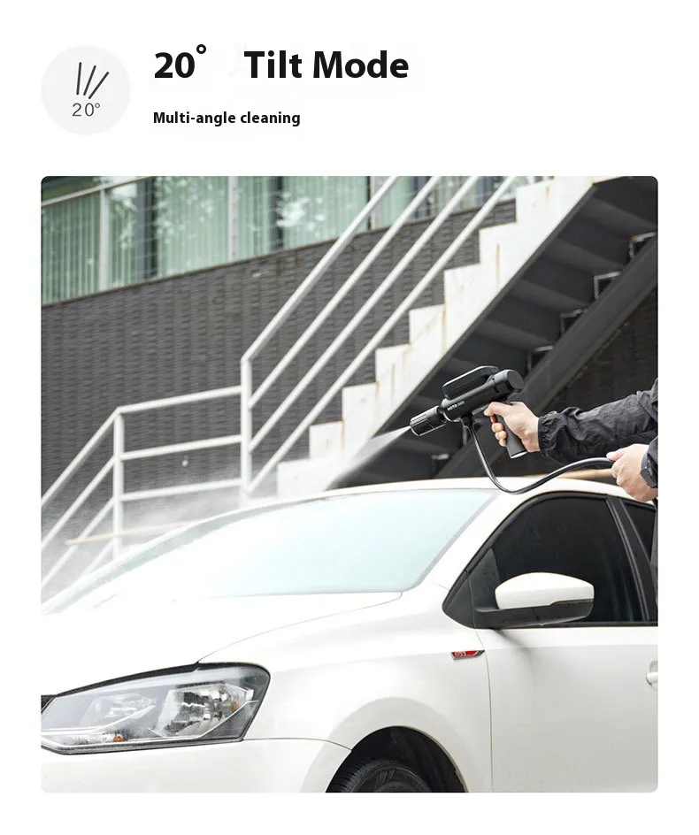 The wireless design ensures hassle-free mobility, powered by a built-in lithium battery with up to 16 minutes of runtime—perfect for quick cleans without the need for outlets or bulky hoses. The included multi-function nozzle and foam lance assembly allow you to switch between spray modes for rinsing, foaming, or targeted pressure.