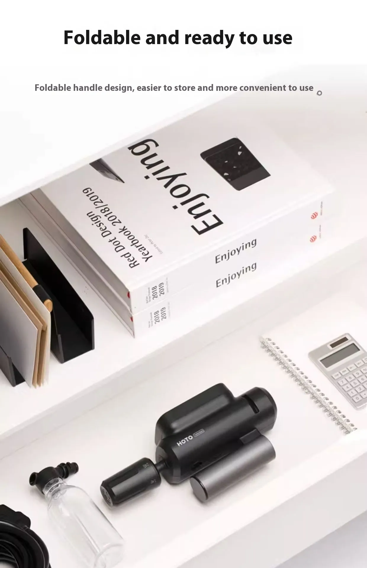 1 x Folding Car Washing Machine x Water pipe assembly x Multi-function nozzle x Foam Lance assembly x Manual x Charging cable