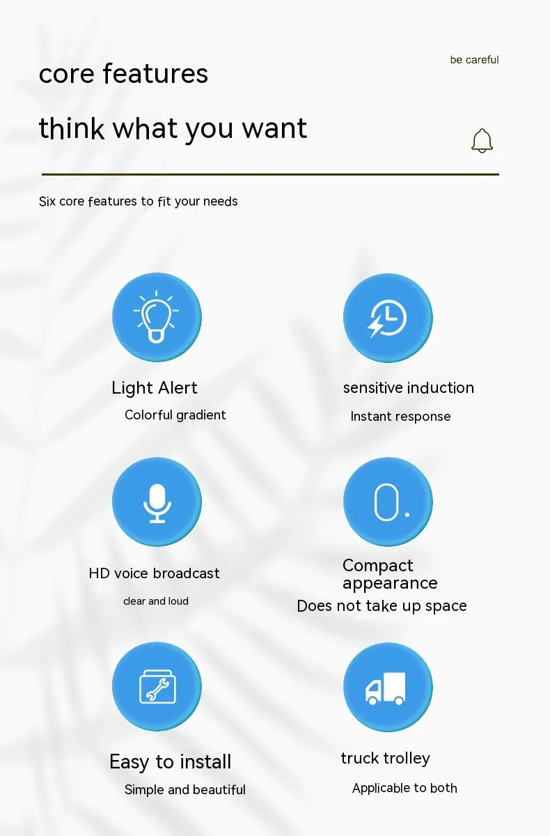 Built from high-quality ABS material, this lightweight yet durable safety reminder offers reliable performance and easy installation. Operating at just 5V power and 0.5W consumption, itβs energy-efficient and suitable for all vehicle models. The alarm system delivers clear English voice alerts, ensuring youβre immediately notified of potential hazards.