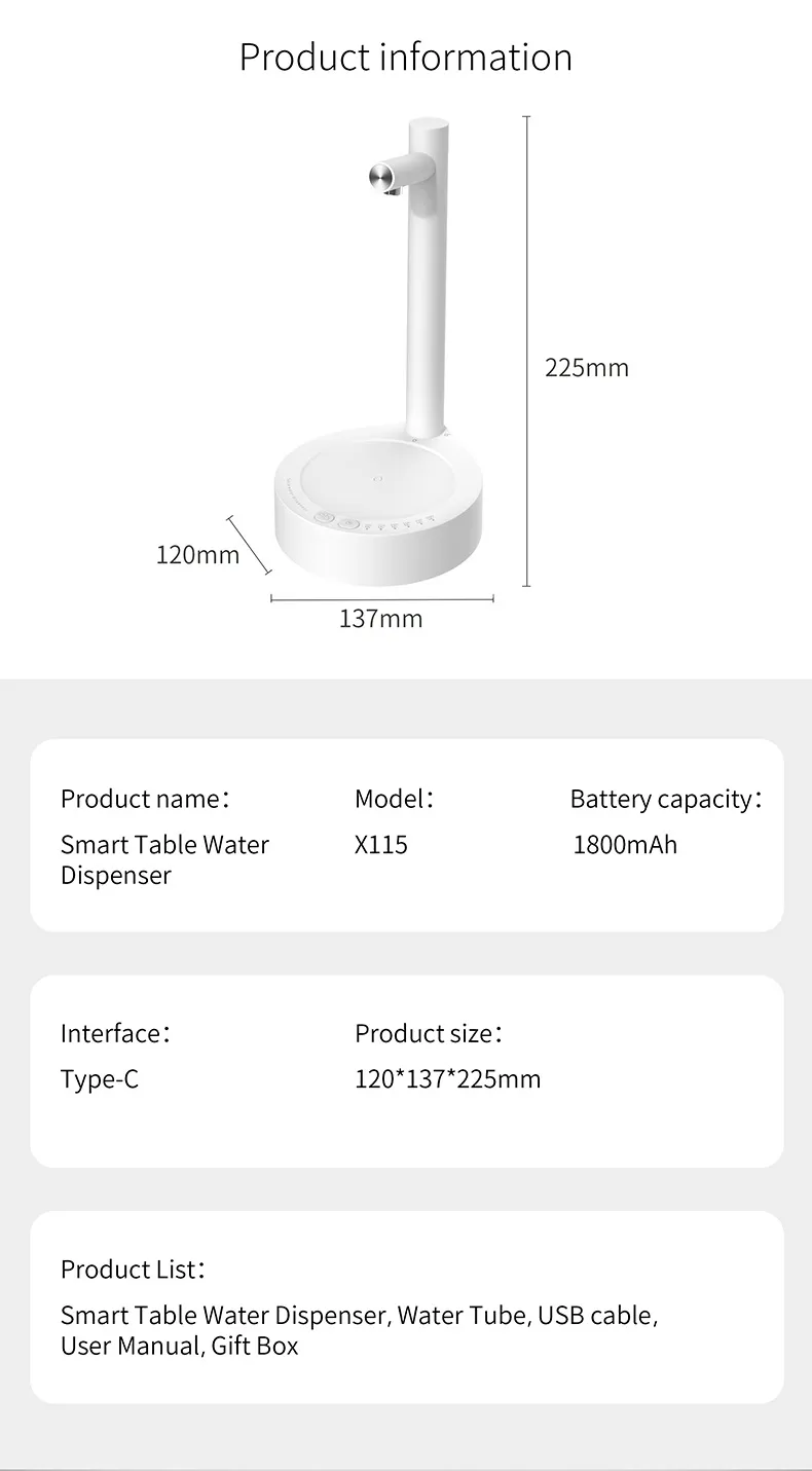 Whether you're filling a glass, cooking, or keeping the family hydrated, the Automatic Bottled Water Dispenser – USB Rechargeable Desktop