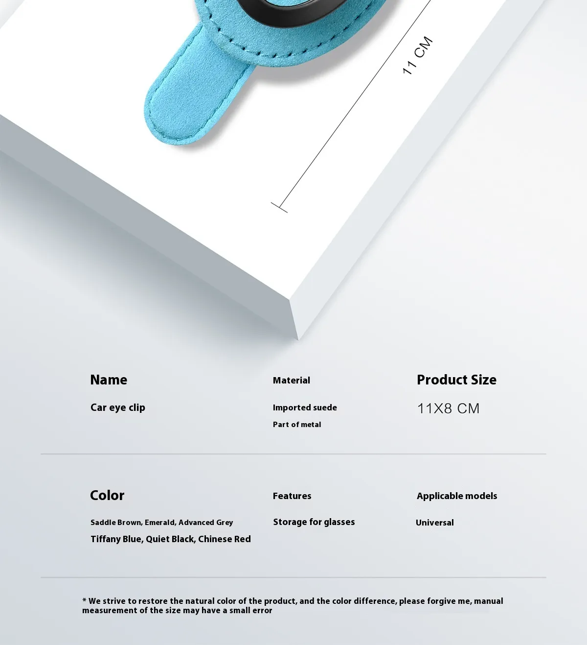 Crafted from premium suede material, this clip combines durability with a soft touch to protect your glasses. Measuring 11 × 5 cm, it fits snugly on most car visors while providing firm and reliable hold, ensuring your sunglasses remain safe even on bumpy rides.