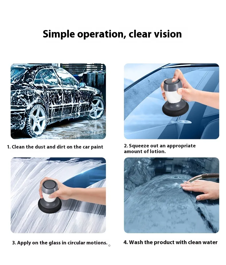 Formulated as a 70ML paste, it allows controlled application for precise cleaning. The compact 8.5 × 8.5 × 11 cm container makes it easy to store in your car or cleaning kit, ready for use whenever needed. Simply apply, rub, and wipe to achieve sparkling, residue-free glass.