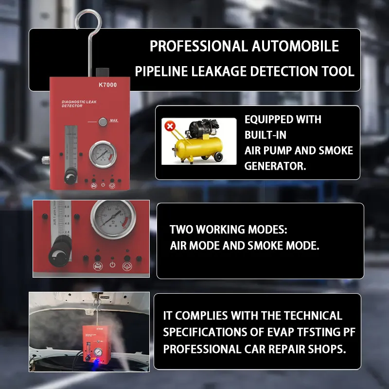 Quickly detect engine pipeline leaks with this professional-grade automotive smoke leak detector. Designed for car repair and maintenance, it helps locate air leaks in intake systems, exhaust systems, and other hidden areas where traditional methods may fail.