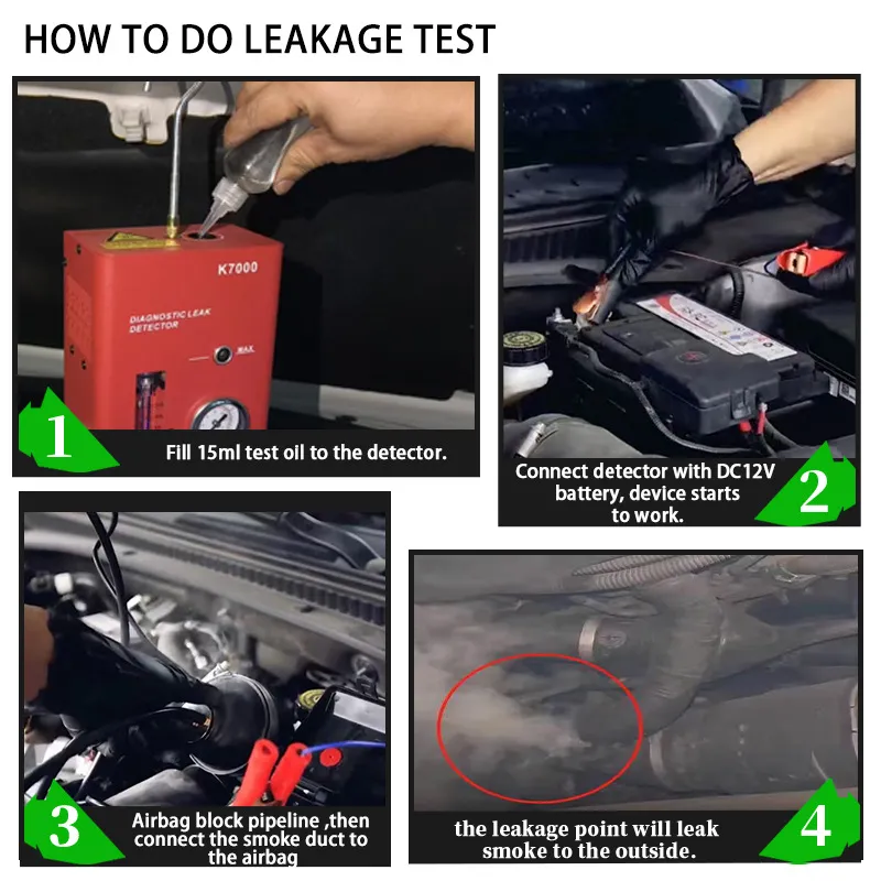 Quickly detect engine pipeline leaks with this professional-grade automotive smoke leak detector. Designed for car repair and maintenance, it helps locate air leaks in intake systems, exhaust systems, and other hidden areas where traditional methods may fail.
