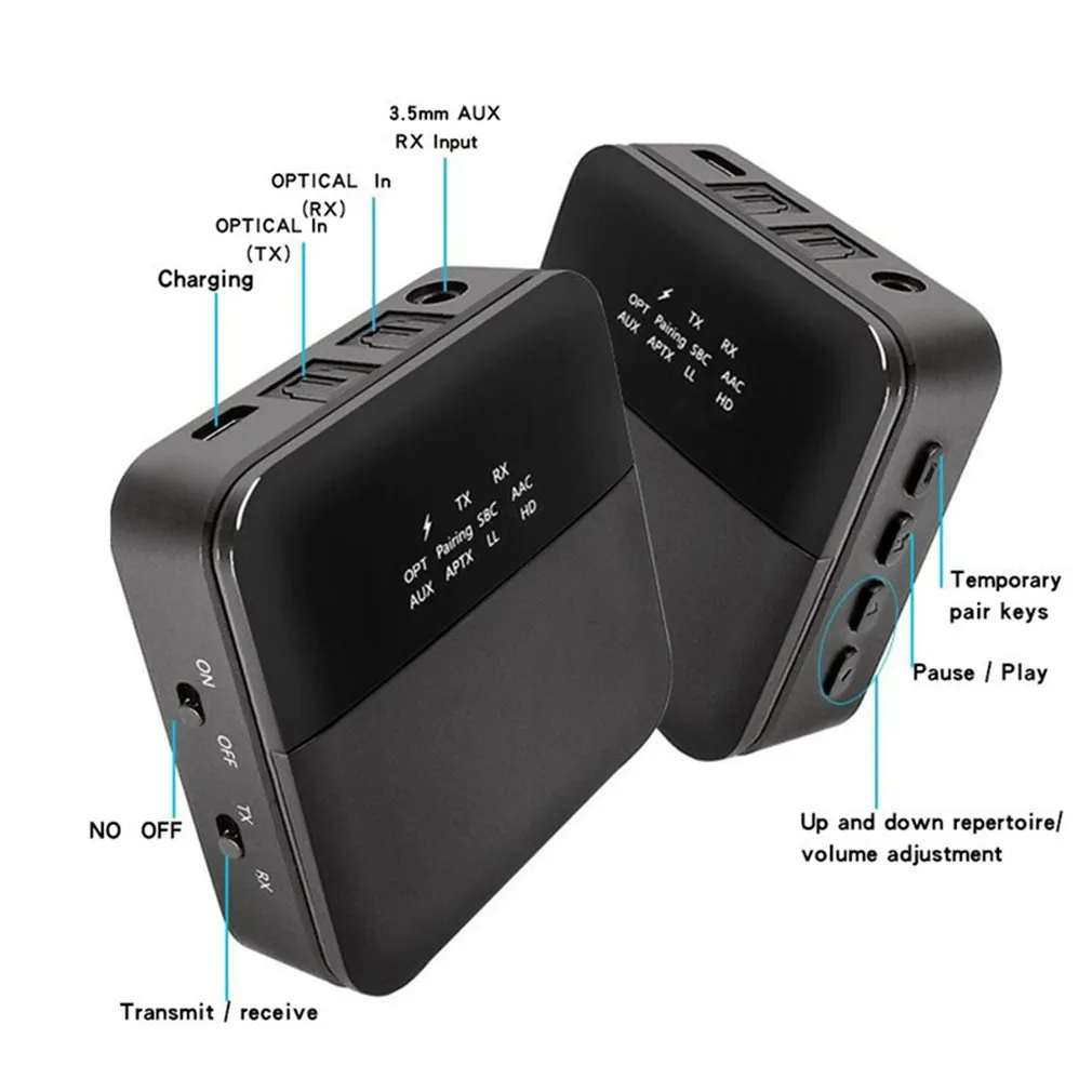 Upgrade your audio experience with the B20 Two-in-One Bluetooth 5.0 Adapter, a powerful transmitter and receiver in one compact device. Powered by the high-end CSR8675 chip, it supports a wide range of audio formats including aptX HD, aptX LL, SBC, AAC, and MP3, ensuring crystal-clear sound whether you're streaming music, watching movies, or gaming.