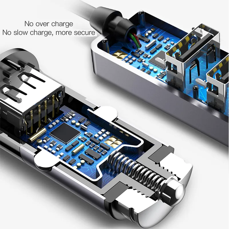 Available in Black and Space Gray, the Baseus 4USB car charger features a sleek, modern design that complements any car interior. Lightweight, portable, and easy to use, this charger is an essential accessory for anyone who relies on multiple electronic devices while on the road.