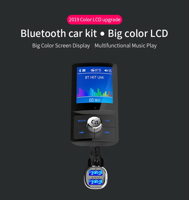BC43 Car MP3 FM Transmitter – Dual USB QC3.0 Charger & Bluetooth Player