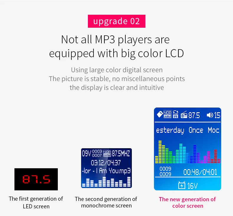 Enjoy multiple music playback options including U-disk, TF card, Bluetooth streaming, and AUX input. The integrated LCD color display clearly shows FM frequency, song details, and working status, making it easy to control your music. With support for folder selection and automatic power-off memory, your playlists are always at your fingertips.