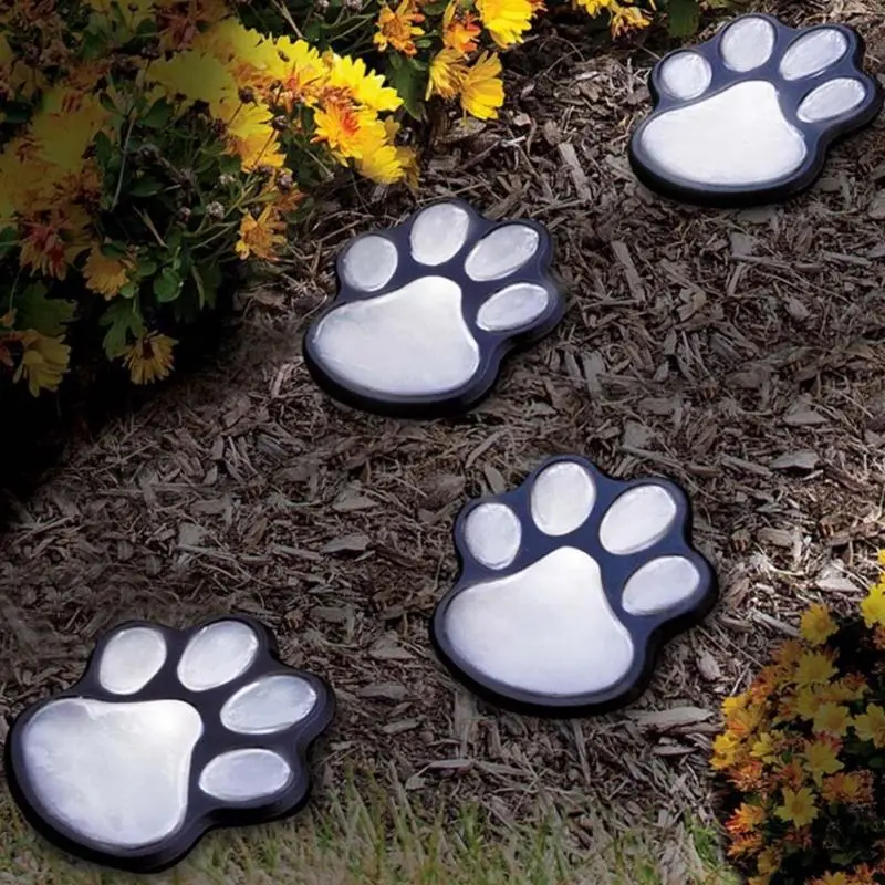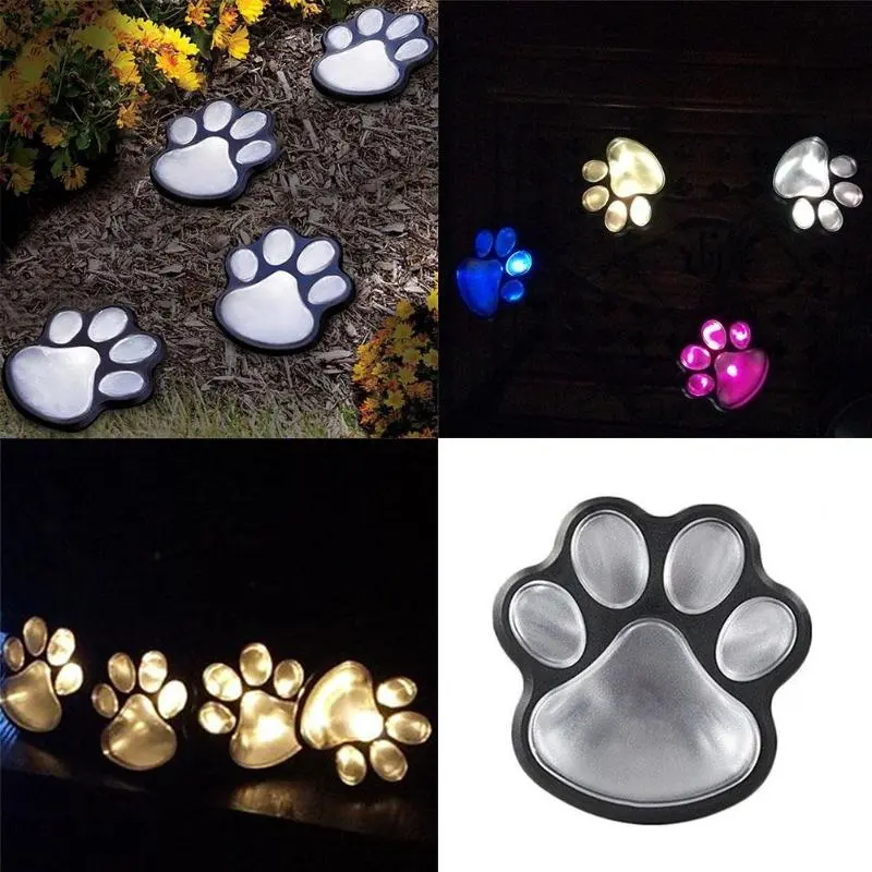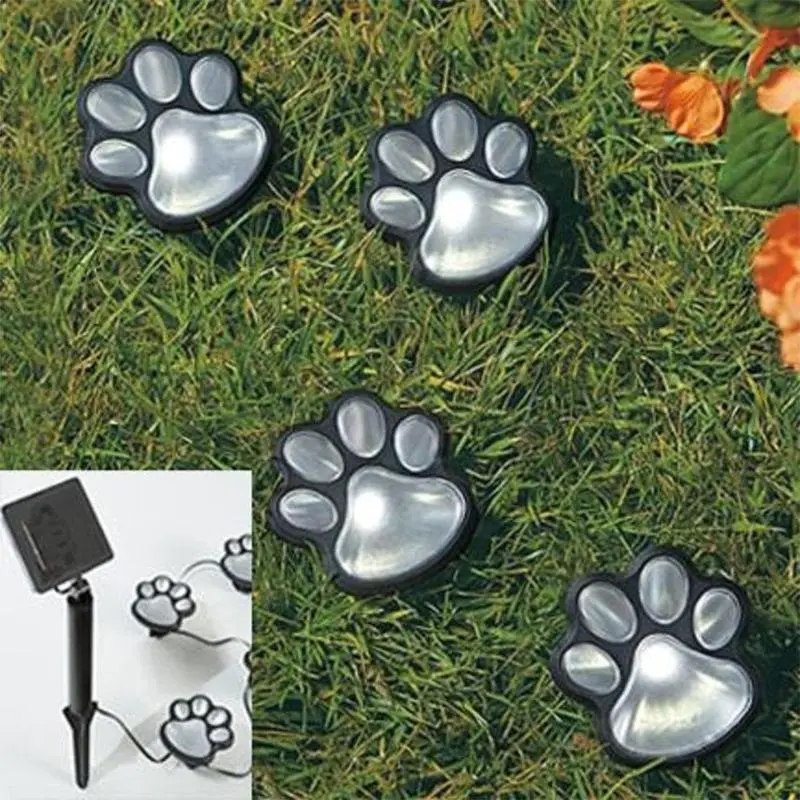 2. One package includes four paw shape lights and one solar panel pole. It is very economical and convenient. You do not have to power every