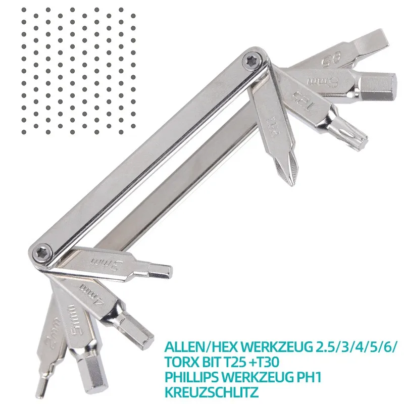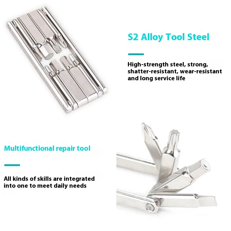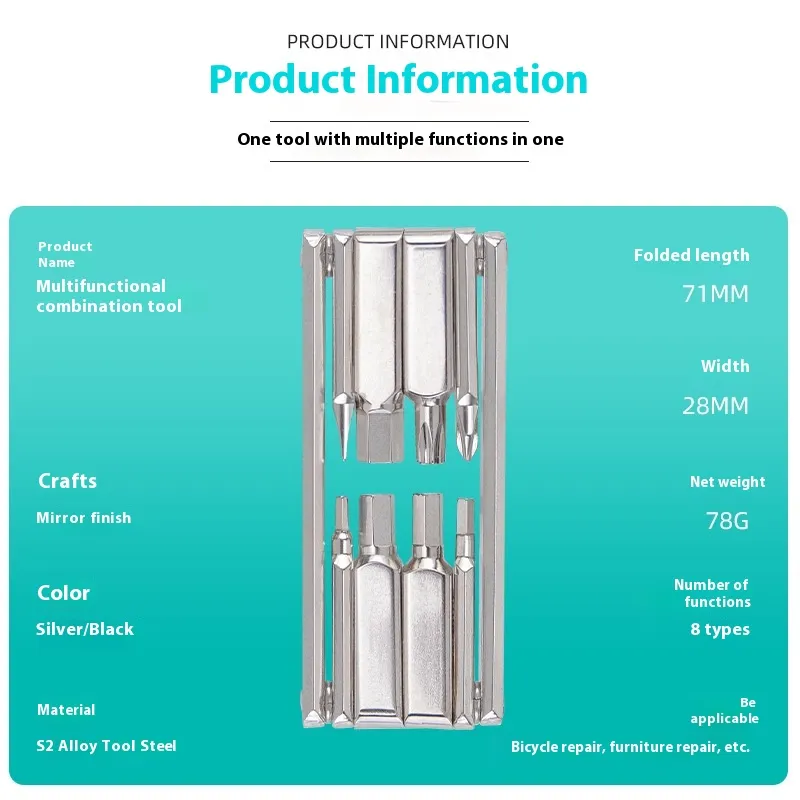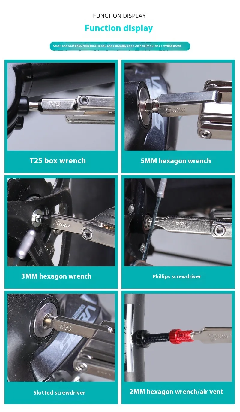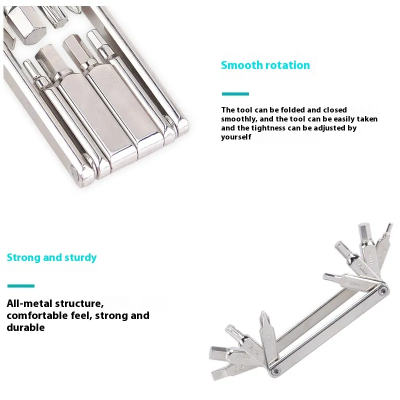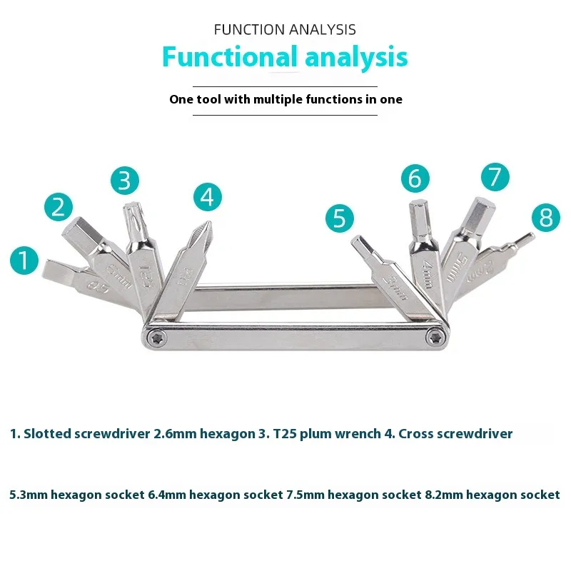 Upgrade your cycling toolkit with this 8-in-1 multifunctional bicycle repair tool, designed to handle a wide range of adjustments and fixes. Featuring hexagon sockets, screwdrivers, and wrench functions, it provides everything you need for quick and easy bike disassembly and repair.