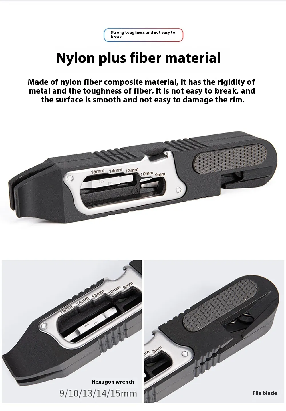 Made from durable nylon and tool steel, the multifunctional wrench ensures long-lasting performance and strength. Its ergonomic design allows for efficient tire prying and tightening, reducing effort and saving time during repairs. Lightweight yet sturdy, it fits easily into your bike bag for quick access.
