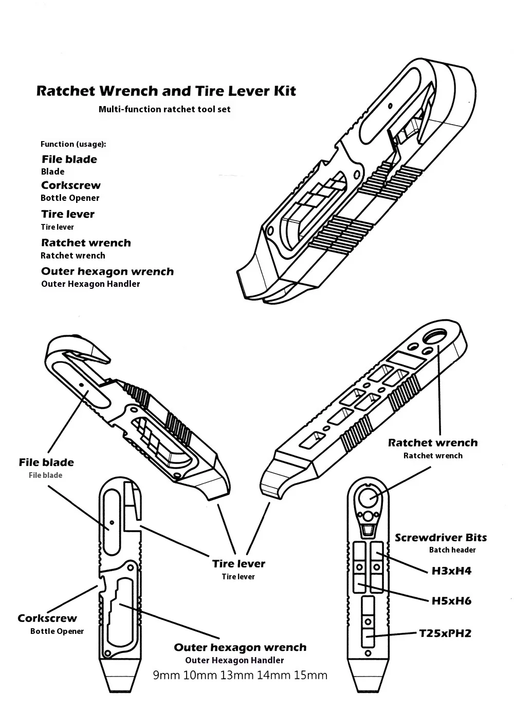 Stay prepared for roadside emergencies with this multifunctional bicycle tire repair tool. Designed with a pry bar and ratchet wrench, it combines multiple repair functions into a compact, easy-to-carry design. Whether fixing a flat or adjusting components, this tool is an essential companion for every cyclist.