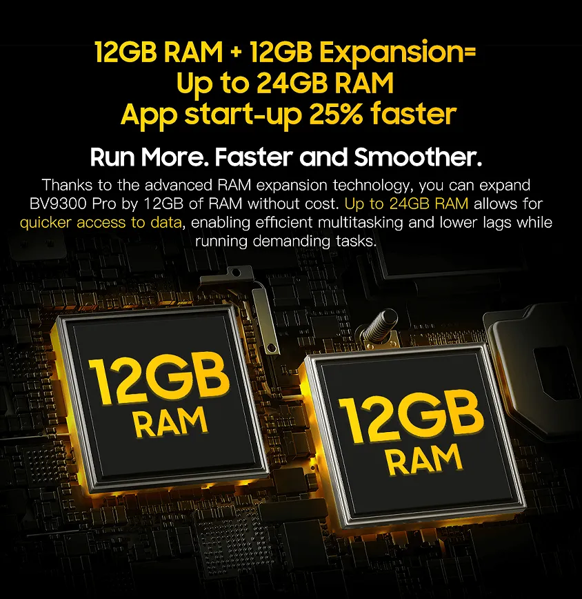 The Blackview BV9300 Pro is a feature-packed rugged smartphone built for adventure, demanding environments, and all-day use. Equipped with a massive 15080mAh battery, it ensures extended operation without the need for frequent recharging. With 24GB RAM (12GB + 12GB expandable) and 256GB internal storage, you get flagship-level performance and storage in a body built to survive the elements.